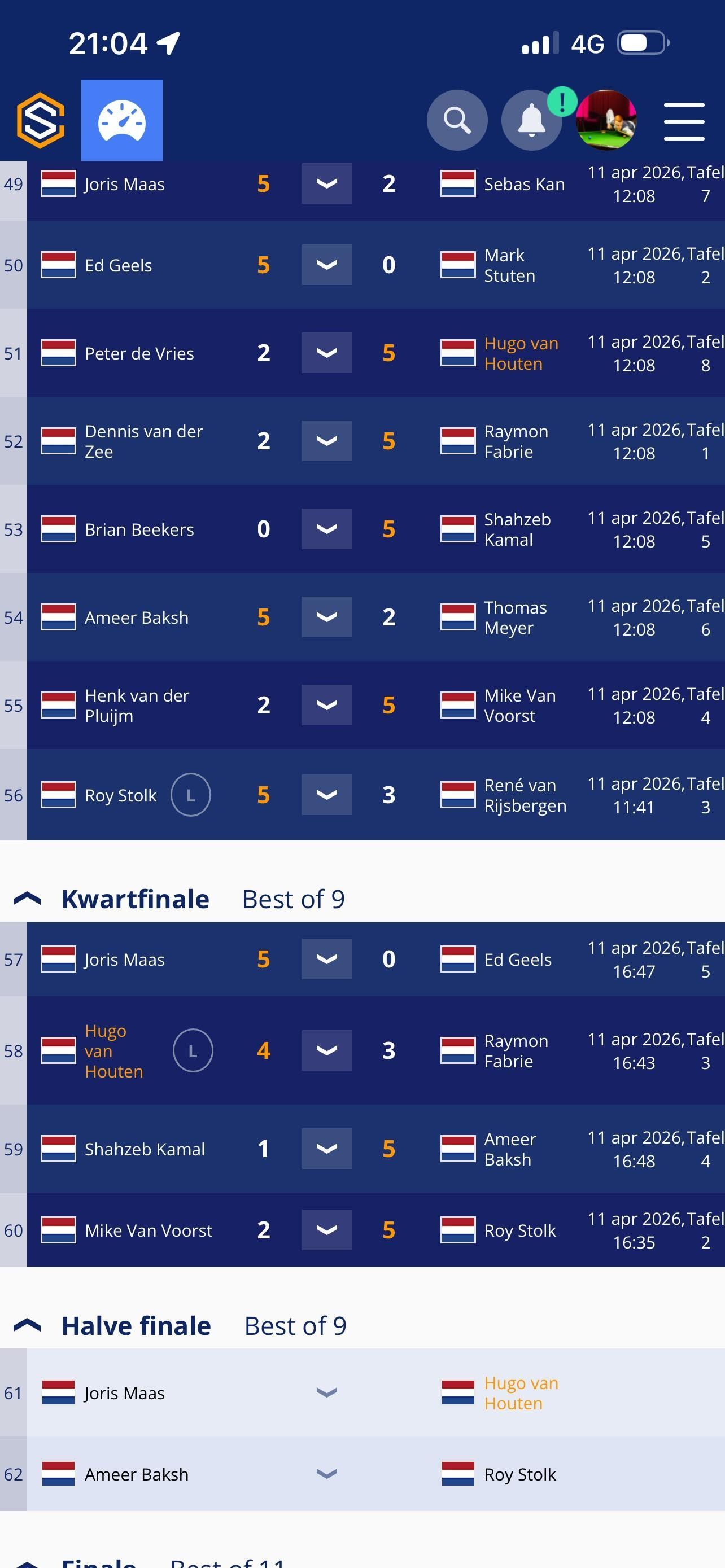 Morgen 11.30 uur de halve finale tegen Joris Maas, zin in! 🙏🏻💪🏻